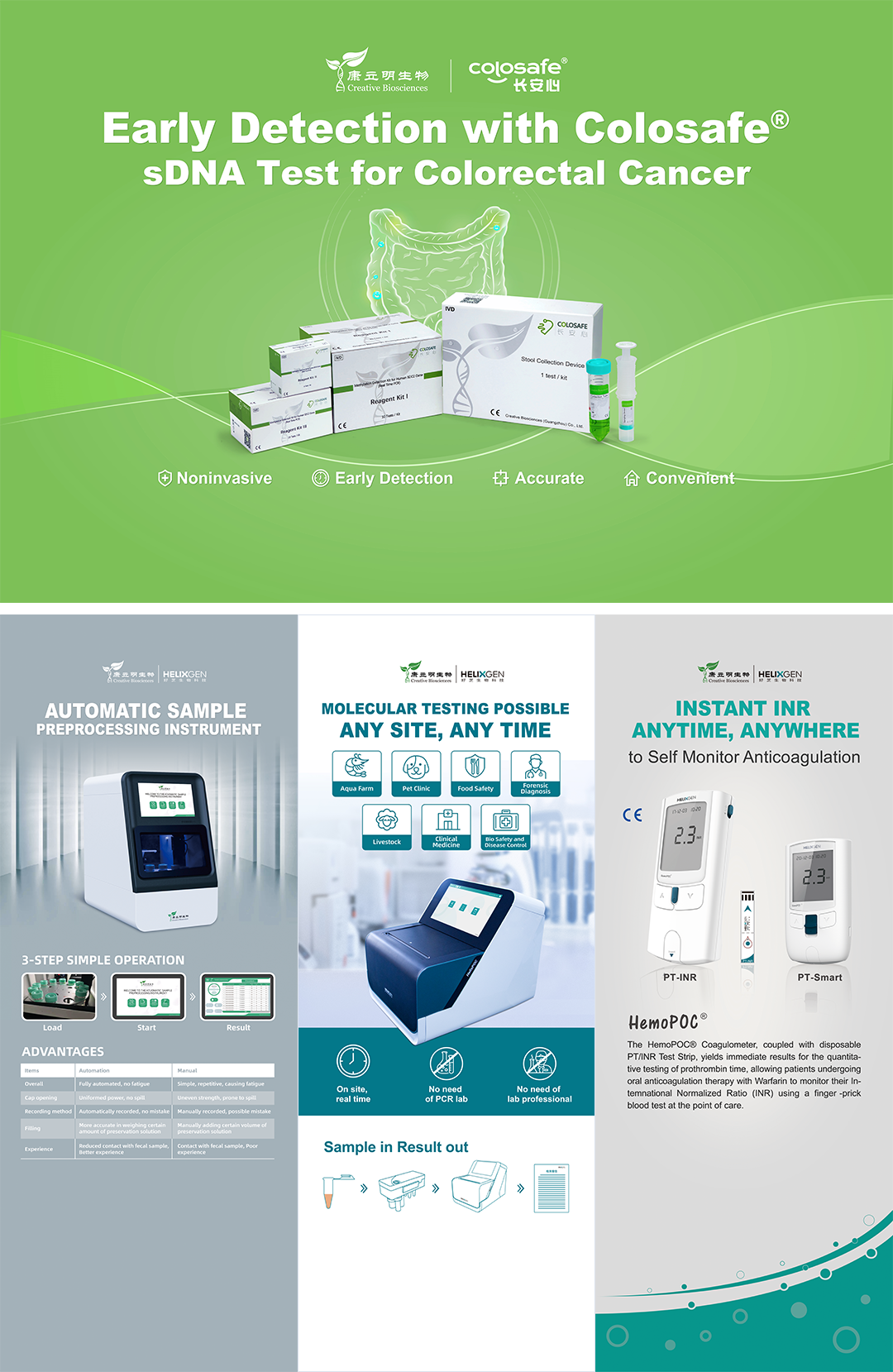 此外,康立明全資子公司好芝生物產(chǎn)品HelixPOC®全自動微流控?zé)晒?/span>PCR一體機(jī)及HemoPOC®凝血檢測系統(tǒng)也將亮相此次展會。