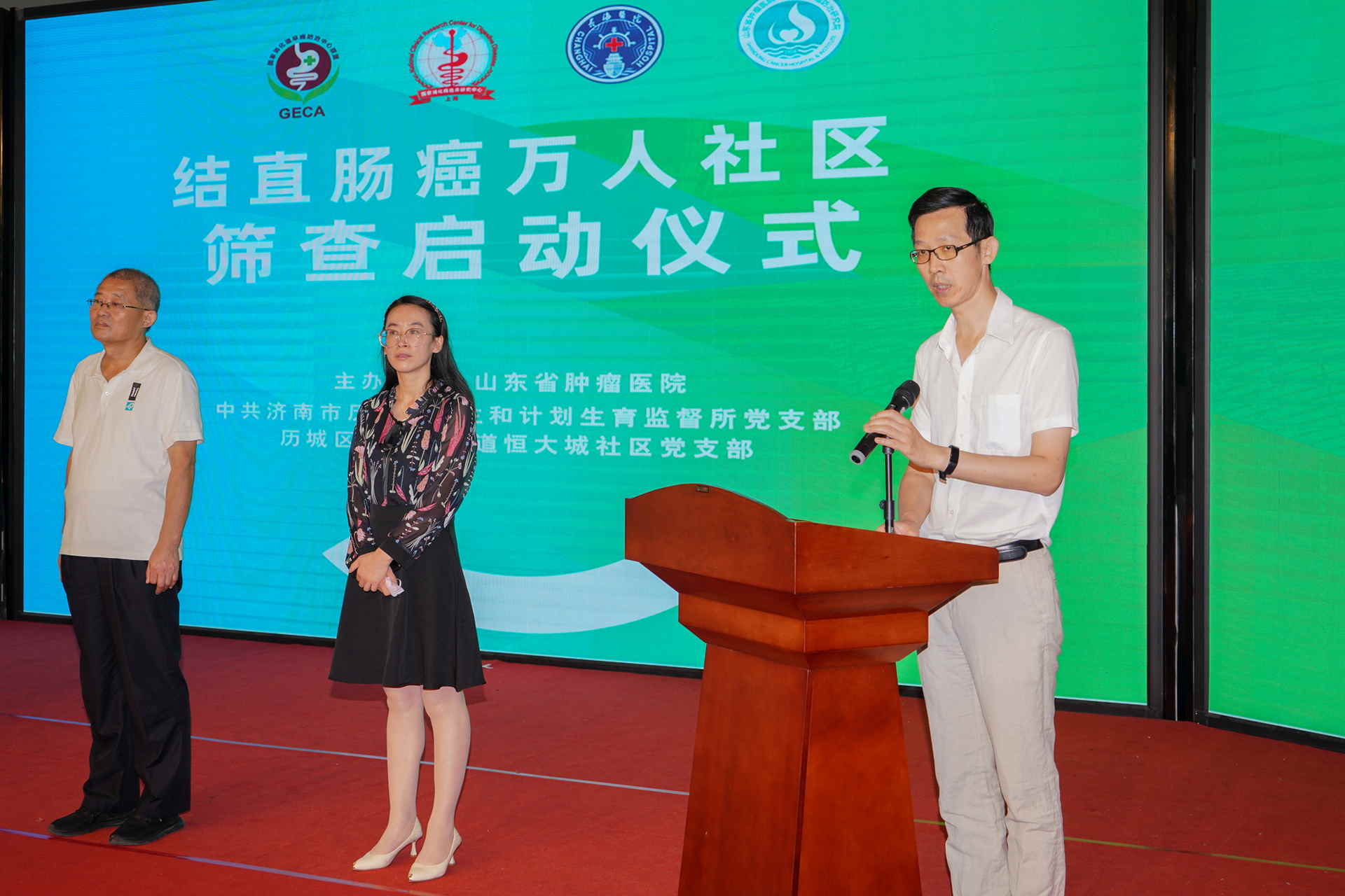 濟南市歷城區(qū)衛(wèi)生健康局黨組書記、局長王元柱參加“結(jié)直腸癌萬人社區(qū)篩查”啟動儀式,并致辭。他指出,濟南市歷城區(qū)正在積極創(chuàng)建省級健康促進(jìn)區(qū)、慢性病綜合防控示范區(qū),致力落實各項健康歷城行動,進(jìn)一步提升全區(qū)居民的健康水平。