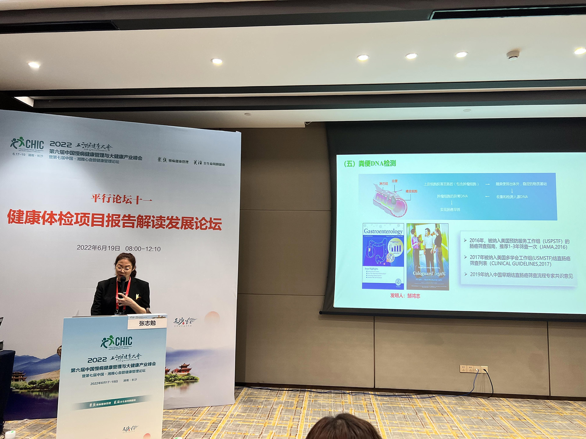 在平行論壇——健康體檢項目報告解讀發(fā)展論壇中,山東大學齊魯醫(yī)院健康管理中心張志勉主任做了題為《健康管理學科的結(jié)直腸癌篩查方案》的專題報告,報告中分享了糞便SDC2基因甲基化檢測新技術應用于大腸癌無創(chuàng)檢測的優(yōu)勢。