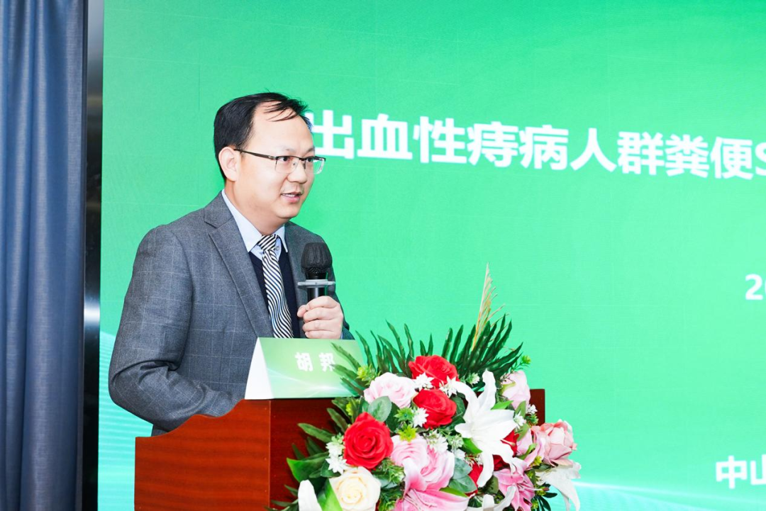學(xué)術(shù)交流環(huán)節(jié),首先由成都肛腸??漆t(yī)院楊向東院長(zhǎng)和貴州中醫(yī)藥大學(xué)第一附屬醫(yī)院曹波主任主持,中山大學(xué)附屬第六醫(yī)院胡邦博士匯報(bào)“出血性痔病人群糞便SDC2基因甲基化檢測(cè)的臨床意義”多中心臨床研究項(xiàng)目結(jié)題報(bào)告。