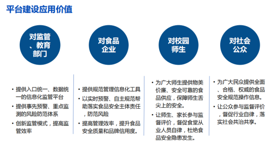 除此之外,現(xiàn)場智能化設備還會自動針對工作人員的非規(guī)范操作進行現(xiàn)場教育和行為糾正,督促工作人員逐漸養(yǎng)成良好的行為規(guī)范,確保因責任意識不強而導致的食安風險存在。整套系統(tǒng)采用物聯(lián)網(wǎng)、云計算技術、視頻分析技術、大數(shù)據(jù)分析技術等,全程監(jiān)控整個食堂食品制作過程,讓食物制作環(huán)節(jié)360度無死角呈現(xiàn)。此系統(tǒng)不僅有利于食堂、餐飲等企業(yè)管理人員、上級主管部門及政府市場監(jiān)管部門實現(xiàn)高效監(jiān)管,更為保障食堂食品安全提供了更為有力的技術保障!
