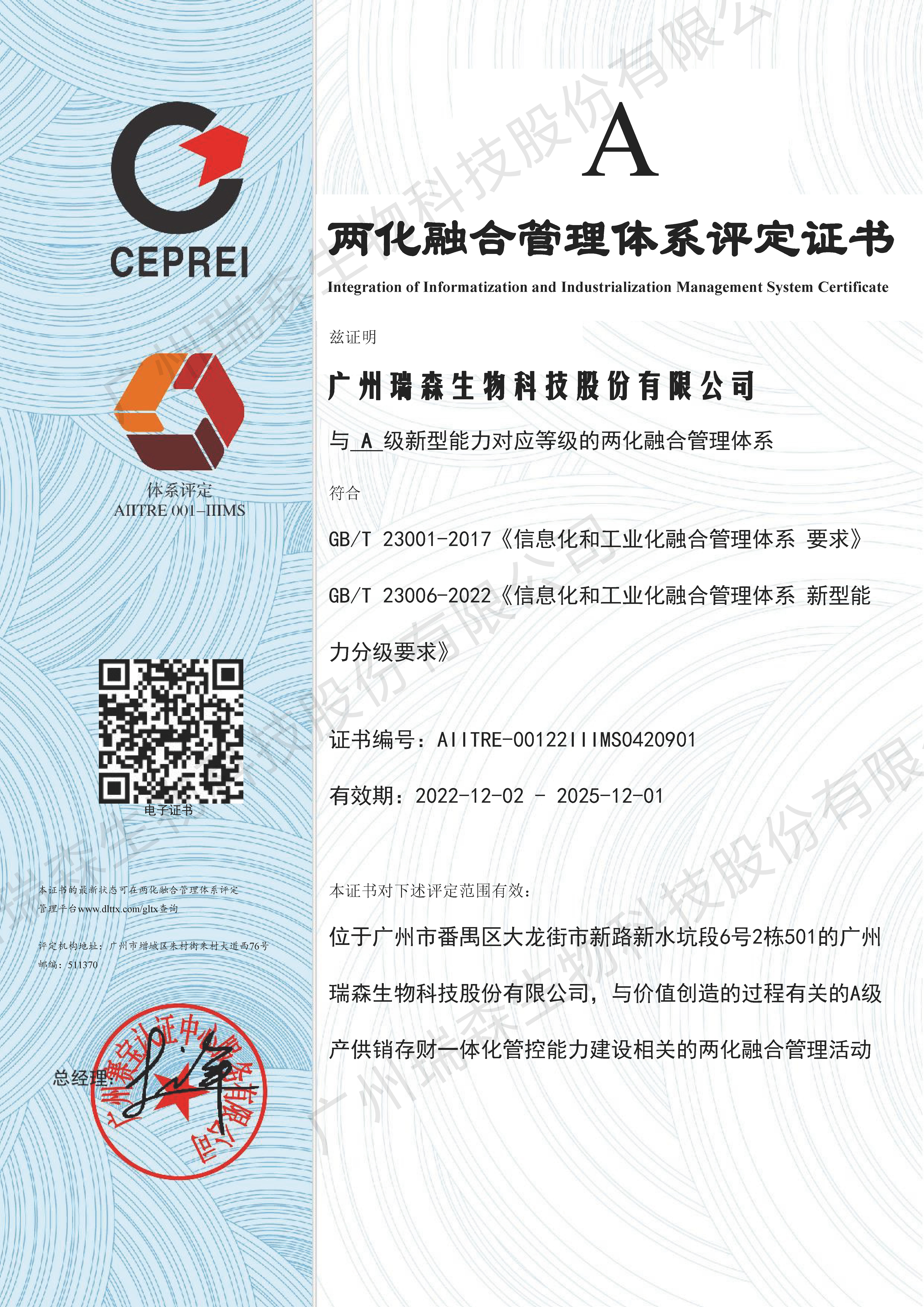 熱烈祝賀瑞森生物獲得A級“兩化融合”管理體系認(rèn)證!