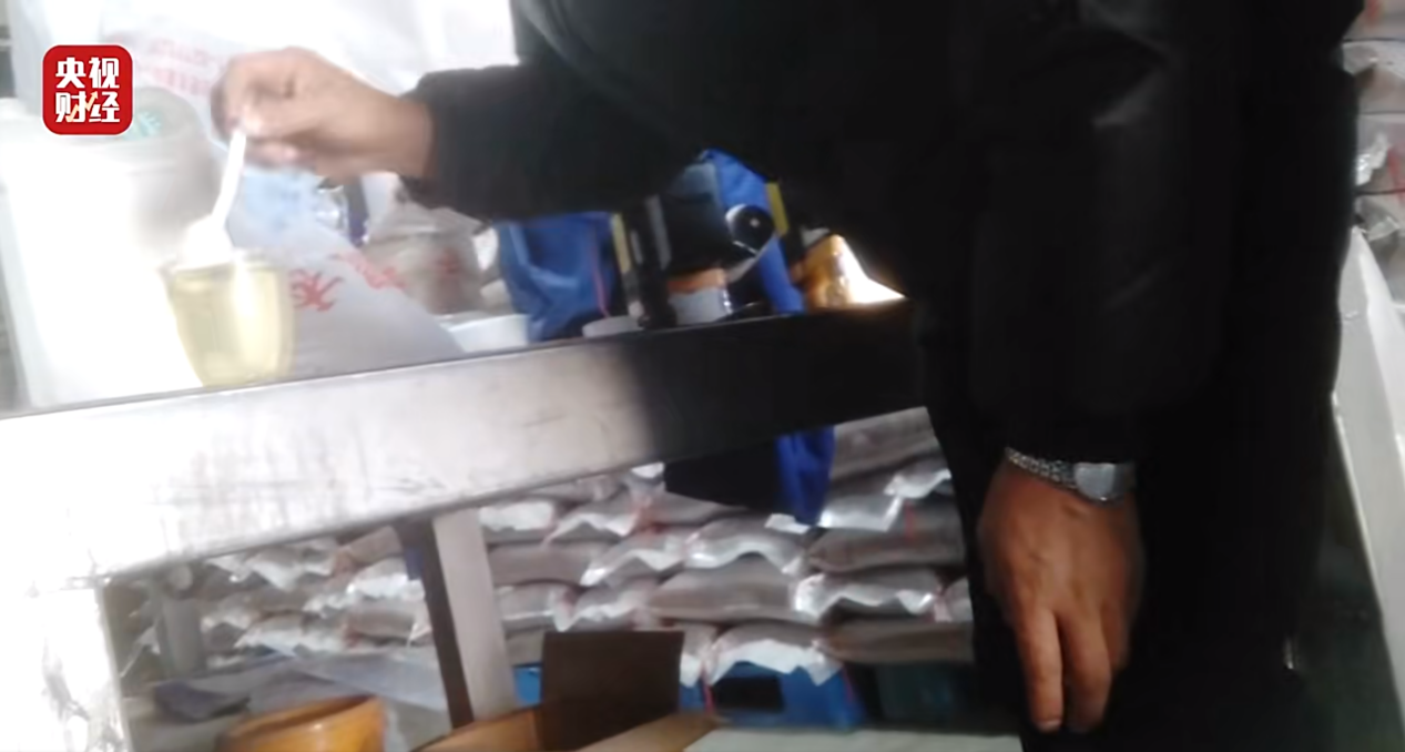 無獨(dú)有偶,在安徽香王糧油食品科技有限公司的倉庫里,堆放著數(shù)十噸大米,外包裝寫著泰國茉莉香米,原料產(chǎn)地泰國。但公司負(fù)責(zé)人沈經(jīng)理承認(rèn),這些大米同樣和泰國香米沒有任何關(guān)系。沈經(jīng)理介紹道,本地產(chǎn)大米原本沒有泰國茉莉香米的香味,但該款大米有一股淡淡的清香,是經(jīng)由一種香精調(diào)配而成,此種香精呈淡黃色,聞起來有一股淡淡的清香味,僅僅需幾滴,便能使本地大米散發(fā)出淡淡的泰國茉莉香米的香味。李經(jīng)理表示,在生產(chǎn)時(shí),他們會(huì)把香精掛到提升機(jī)上,通過注射器加到大米里,年銷量能達(dá)到一千余噸。與此同時(shí),在淮南市楚豐工貿(mào)有限公司生產(chǎn)車間同樣存在香精,工廠負(fù)責(zé)人仇經(jīng)理坦承,他們也是在本地產(chǎn)大米中添加香精,冒充香米。而關(guān)于香精從何而來,香王公司和楚豐公司兩位負(fù)責(zé)人都承認(rèn),他們的香精是從上海一個(gè)名為郭經(jīng)理處買來的。
