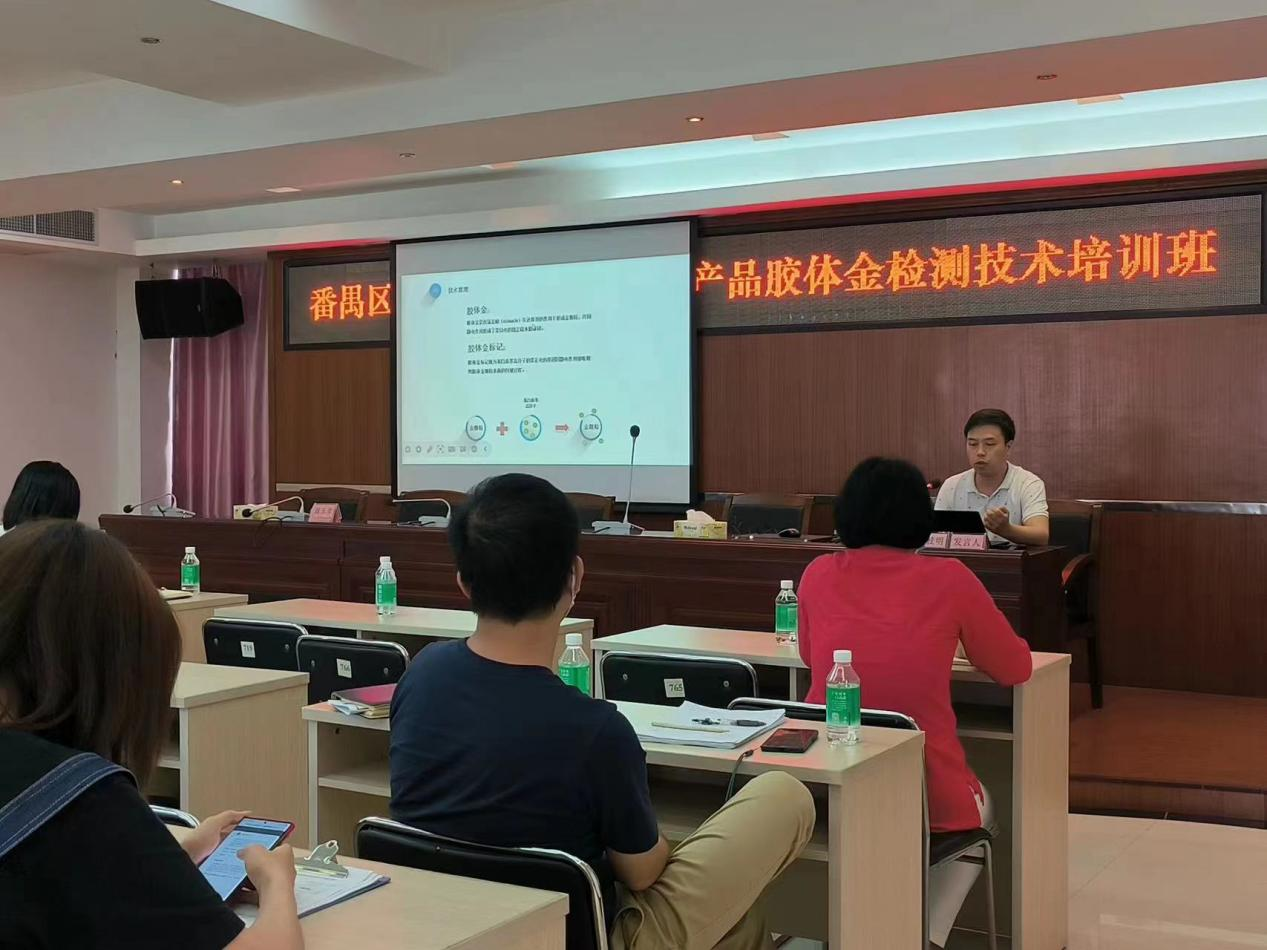 為持續(xù)貫徹落實省市區(qū)關(guān)于食用農(nóng)產(chǎn)品“治違禁、控藥殘、促提升”三年行動方案,切實提高對農(nóng)產(chǎn)品質(zhì)量安全工作的認識,加強番禺區(qū)農(nóng)產(chǎn)品質(zhì)量安全檢測專業(yè)隊伍建設(shè),提高基層農(nóng)產(chǎn)品質(zhì)量安全監(jiān)測站的檢測能力。番禺區(qū)農(nóng)產(chǎn)品質(zhì)量監(jiān)測所于2023年5月6日下午在監(jiān)測所辦公樓六樓會議室舉辦“2023番禺區(qū)農(nóng)產(chǎn)品質(zhì)量安全快速檢測技術(shù)(膠體金)培訓(xùn)班會議”。番禺區(qū)農(nóng)業(yè)農(nóng)村局分管領(lǐng)導(dǎo)、區(qū)農(nóng)產(chǎn)品質(zhì)量安全監(jiān)管科相關(guān)人員、區(qū)農(nóng)監(jiān)所相關(guān)人員、各鎮(zhèn)街農(nóng)產(chǎn)品質(zhì)量安全員(約40人)以及廣州瑞森生物科技股份有限公司技術(shù)培訓(xùn)同事參與了此次培訓(xùn)班會議。