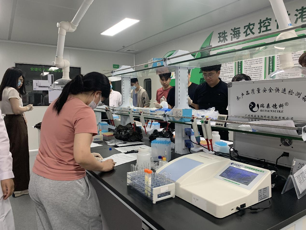 根據(jù)《2023年珠海市開展市場銷售食用農(nóng)產(chǎn)品快速檢測工作方案》有關(guān)要求,為提高食用農(nóng)產(chǎn)品快速檢測操作技術(shù)水平,推進珠海市食用農(nóng)產(chǎn)品快檢工作的順利開展,珠海市市場監(jiān)督管理局于2023年5月18-19日在珠海市農(nóng)產(chǎn)品物流與安全檢測中心舉辦“珠海市2023 年食用農(nóng)產(chǎn)品快速檢測工作培訓(xùn)班”。珠海市市場監(jiān)督管理局分管領(lǐng)導(dǎo)、珠海市各區(qū)負(fù)責(zé)食用農(nóng)產(chǎn)品快檢工作的基層監(jiān)管人員、各區(qū)委托第三方檢驗機構(gòu)派出人員,菜籃子配送平臺、農(nóng)貿(mào)市場及超市快檢人員、廣州瑞森生物科技股份有限公司相關(guān)領(lǐng)導(dǎo)及技術(shù)培訓(xùn)同事參與了本次培訓(xùn)班活動。