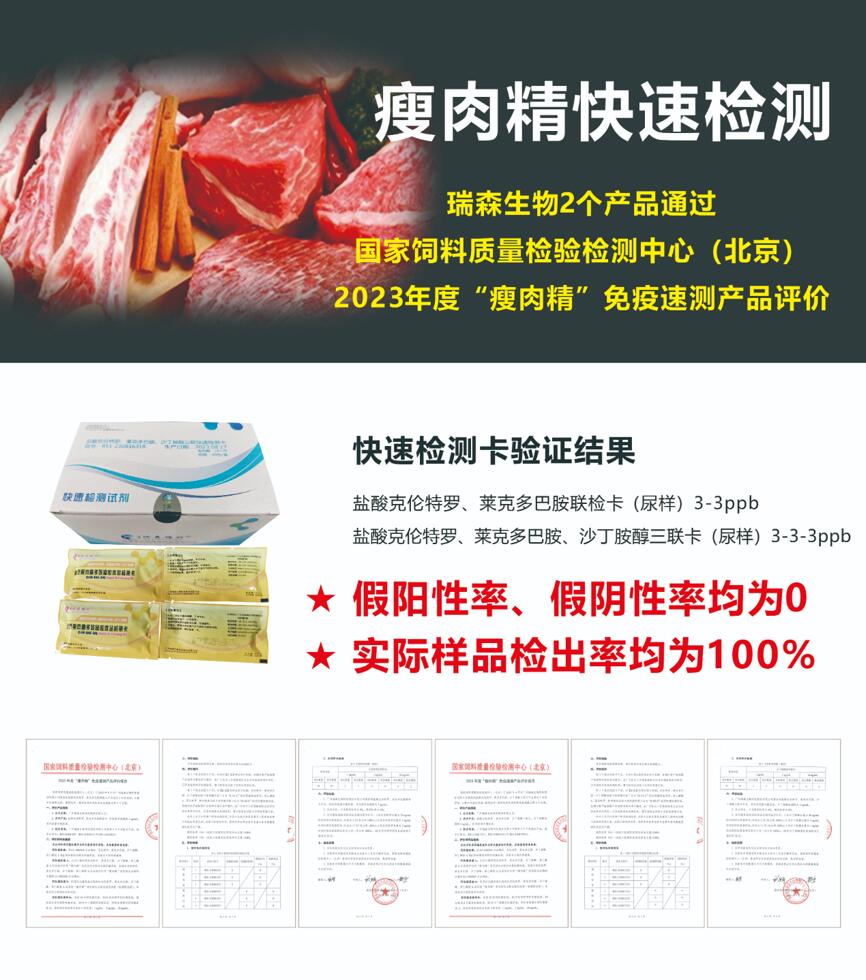 喜訊 | 瑞森生物2款產(chǎn)品通過2023年“瘦肉精”免疫速測產(chǎn)品評價(jià)!